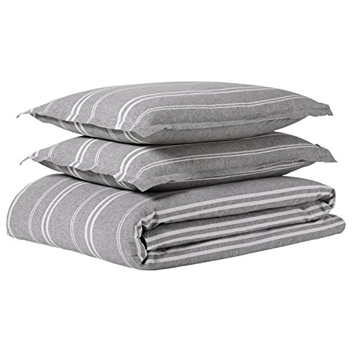Product reviews Amazon Brand – Rivet Maxwell Washed Stripe Duvet Cover Set, Full or Queen, Grey with White Stripe
